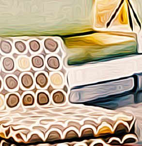 ‘Jackpot!’ I heard a hushed cry behind me, and turned to look as Alex came out of the staff kitchen. He held a couple of packets of noodles aloft in victory, stuffing them into a rough-sewn leather bag as if the Others were going to arrive and steal them from him.